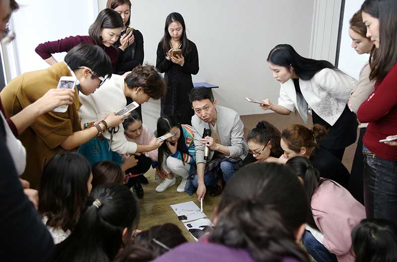 韩久九老师是国内量化形象管理学说的创始人,从事形象管理行业多年对于形象管理有着精深的研究和独到的见解。韩老师曾在清华研究院、北大研究院、北京电影学院、文化部、财政部、清华大学、安利中国、中友百货等企事业单位进行讲座,并在央视、北京电视台、各地卫视等多家电视台做系列时尚节目嘉宾。课堂上韩久九老师结合流行元素、心理嗜好、生活方式、体型等多方面的因素进行了系统详尽的讲解。